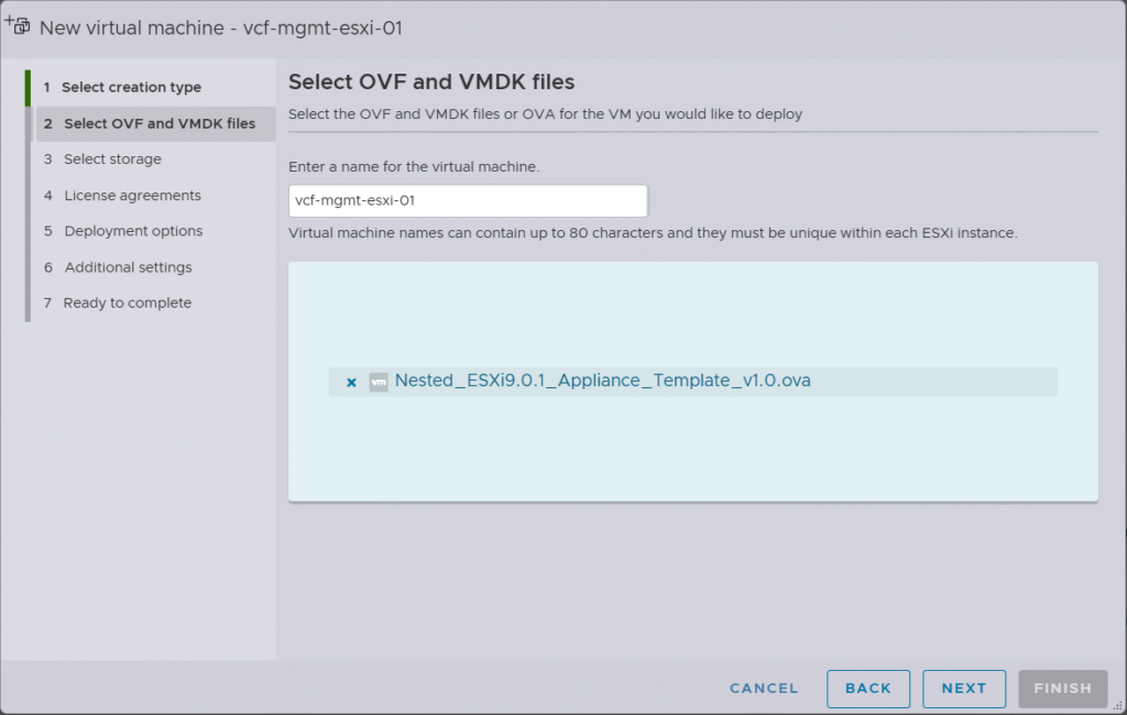 After that, you can kick off the ESX installation by deploying the OVA template.
