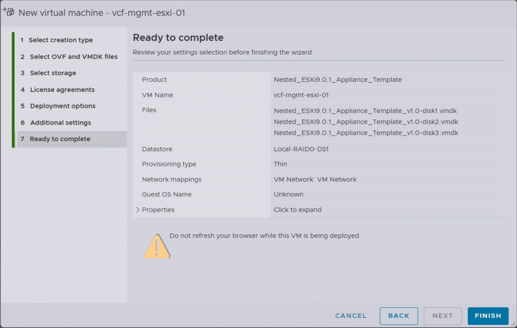 As I have a single physical HPE server, my home lab will be relying on 3 nested ESX hosts deployed to form the VCF 9.0.1 MGMT domain. As per VCF 9.0.1 BOM, we need to deploy/configure ESX 9.0.1.0 build 24957456 as part of the preparation process.