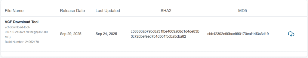 https://support.broadcom.com/group/ecx/productfiles?subFamily=VMware%20Cloud%20Foundation&displayGroup=VMware%20Cloud%20Foundation%209&release=9.0.1.0&os=&servicePk=534266&language=EN